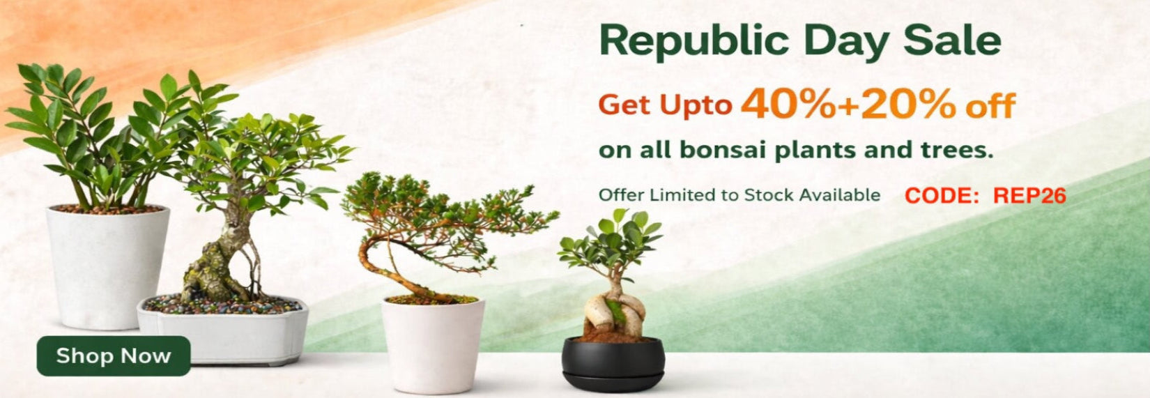 ["Evergreen","Specimen Bonsai"]Regular price Rs. 4,900.00Regular priceRs. 10,000.00Sale price Rs. 4,900.00🇮🇳 Republic Day Offer Buy 2 for Rs. 6,860 Save 66% (Save Rs. 13,140)Sale -
