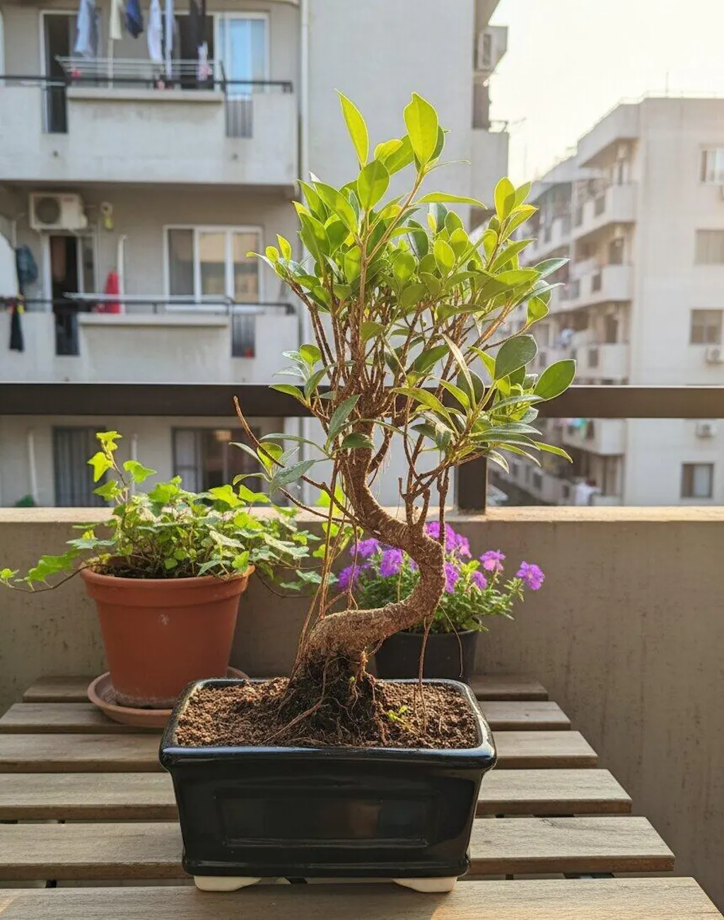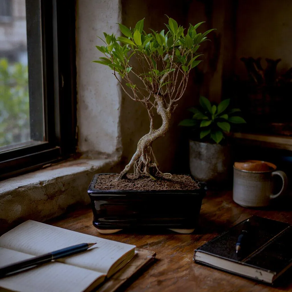 Obsessed is an understatement! I’ve been looking for that "hero piece" for my balcony garden, and this Banyan bonsai fits the aesthetic perfectly. The elegantly twisted trunk adds such a sophisticated, sculptural element, and the black ceramic pot is sleek and high-end—it honestly looks like it stepped out of a Pinterest board.
